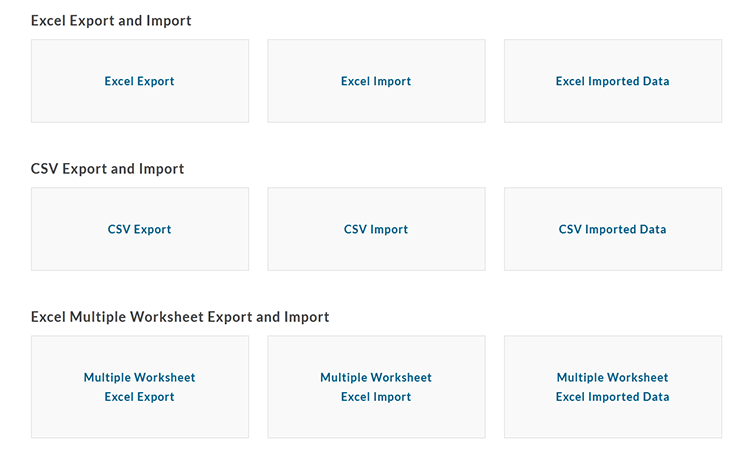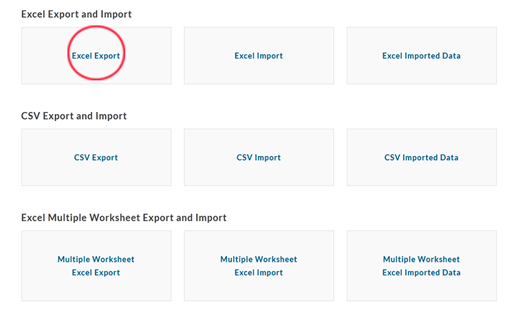 Excel/CSV Export is simple web report export tool, you do can use Export/Import – MySQL Data tool for excel/csv file.It can be easily customized as like worksheet name, font, font size, cells fill color, cells border color, text alignment vertical, text alignment horizontal and cells width easily changeable. Excel cells is set number formats and data validation. MySQL Data is showing rows group wise and header(rows and columns merge).You can protected and unprotected easily set on excel worksheet cells.